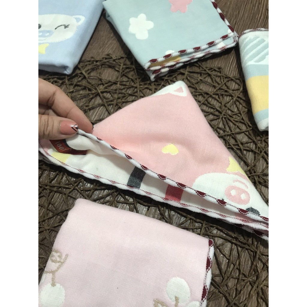 Khăn mặt cotton khăn mặt cho bé mềm mại an toàn 🍿 Trẻ con thì không thể thiếu được món khăn mặt này rồi. Khăn 6 lớp rất bền, tính ra dùng thấy lợi hơn mấy set khăn mỏng kia rất nhiều. 🍼 Bé dùng làm khăn rửa mặt, khăn lau dãi,khăn lau sữa,... 🍼 6 lớp, không sử dụng chất huỳnh quang và các chất cấm trong công nghiệp vải sợi. 🍼 So với bông bình thường thì khăn cotton này không xổ bông, mềm, thân thiện với da, hút nước tốt và giặt nhanh khô.