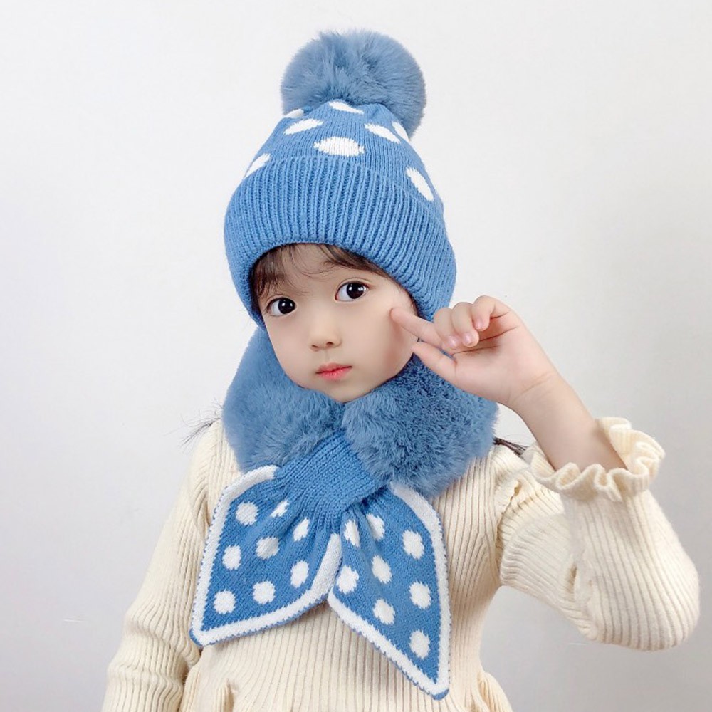 Thời trang trẻ em & trẻ sơ sinh > Phụ kiện trẻ em & trẻ sơ sinh > Mũ & mũ lưỡi trai || Bộ khăn mũ cho bé gái, set mũ len + khăn quàng cổ chấm bi cực xinh