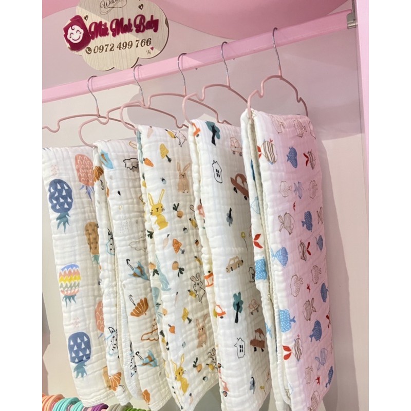 Giới thiệu Khăn tắm cho bé sơ sinh 6 lớp xô muslin, hàng xuất Nhật, mềm mịn, êm ái, thấm hút tốt, không xù lông, kích thước 110*110
