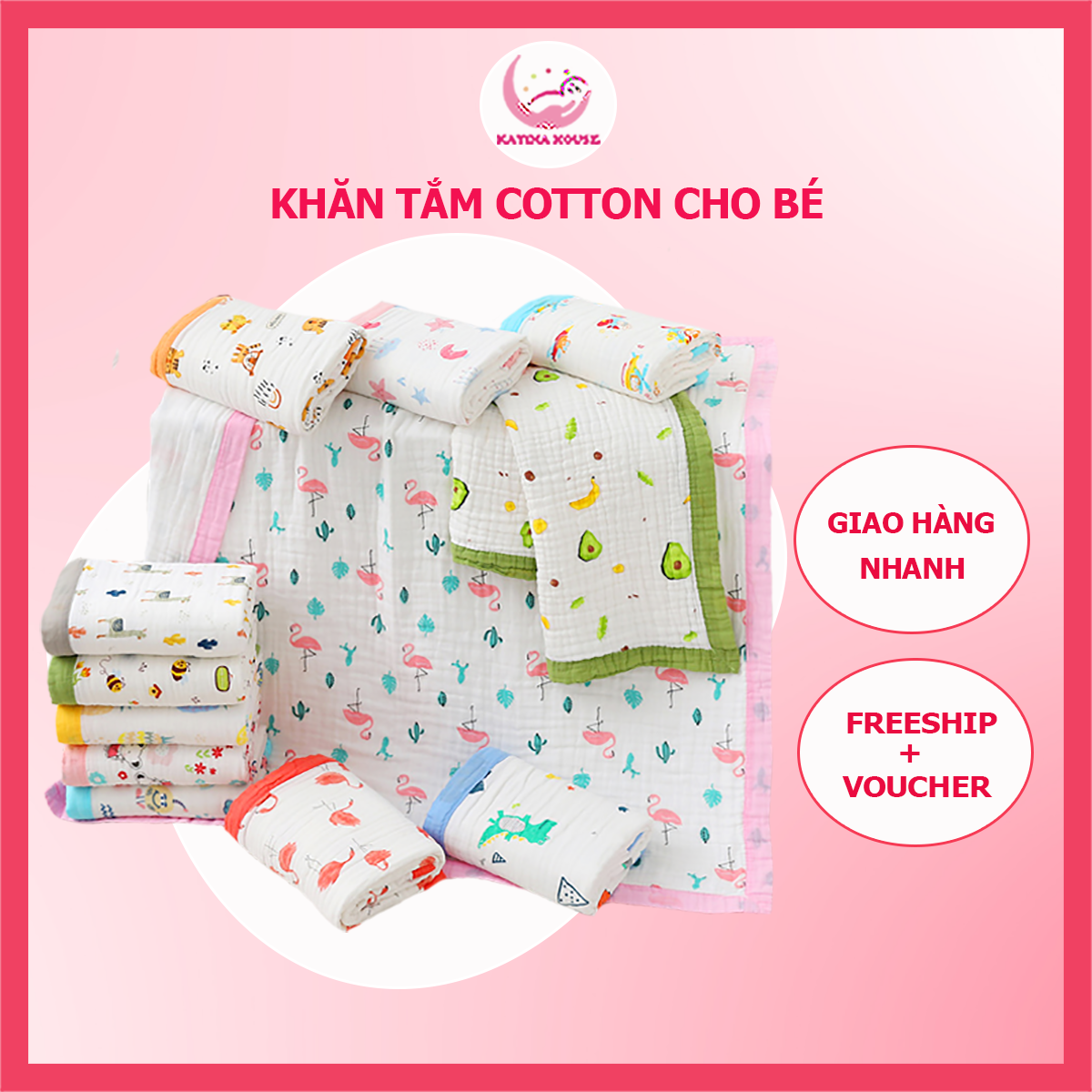 Kích thước khăn cho bé: 90x110cm ( +- 3-5cm )
