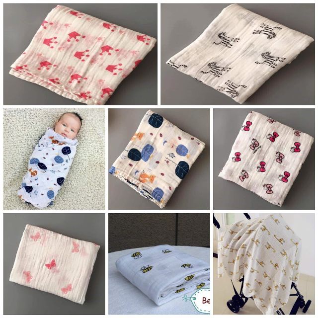 Khăn dệt kép2 lớp mềm mịn thích hợp dùng để quấn ủ và làm khăn tắm, gối đầu cho bé.