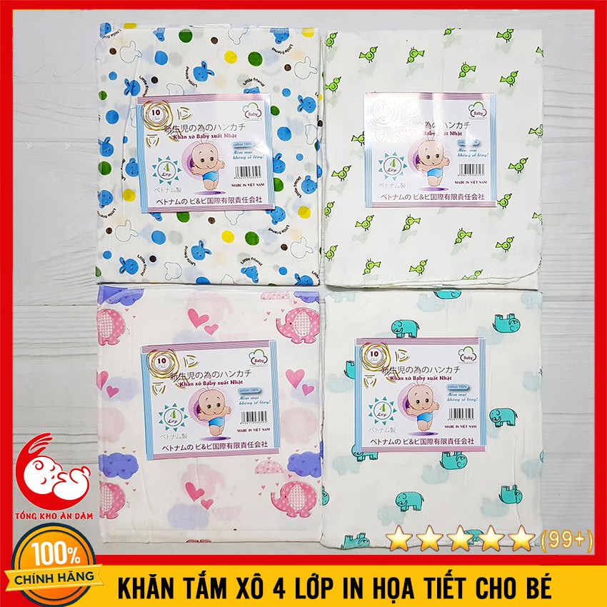 Giới thiệu Khăn Tắm Xô Sơ Sinh 4 Lớp In Họa Tiết Xinh Xinh Siêu Thấm Cho Bé - BTT00076