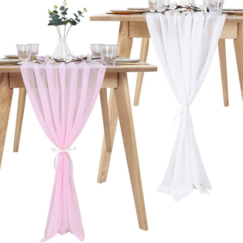 Specification: Material: Chiffon Optional Color: Beige, Black, Gray, Pink, Peach Pink, White Size: approx. 305x70cm(120.08x27.56in)(length x width) Quantity: 1 set