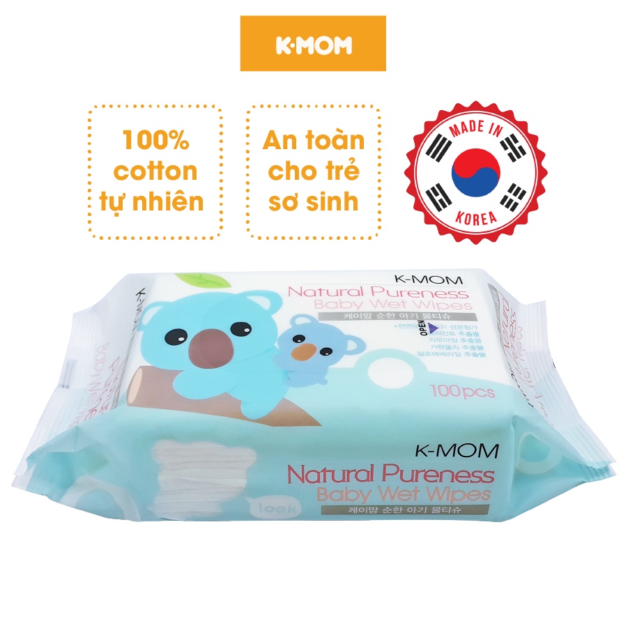 Giới thiệu Khăn ướt cao cấp K-Mom Hàn Quốc chất liệu cotton tự nhiên siêu mềm gói 100 chiếc