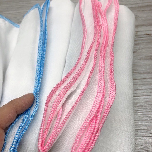 Thiết kế 6 lớp dày dặn giúp mẹ chăm sóc bé yêu tốt hơn. Viền khăn may chắc chắn, hạn chế bung xổ vải.