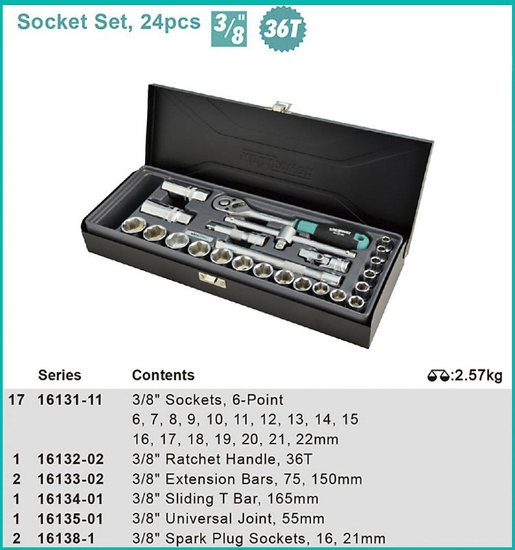Bộ khẩu 3/8” có 24 chi tiết Whirlpower 1613-SK03S rất thích hợp với các bạn bên sửa chữa xe hơi, xe máy, nhà máy xí nghiệp.