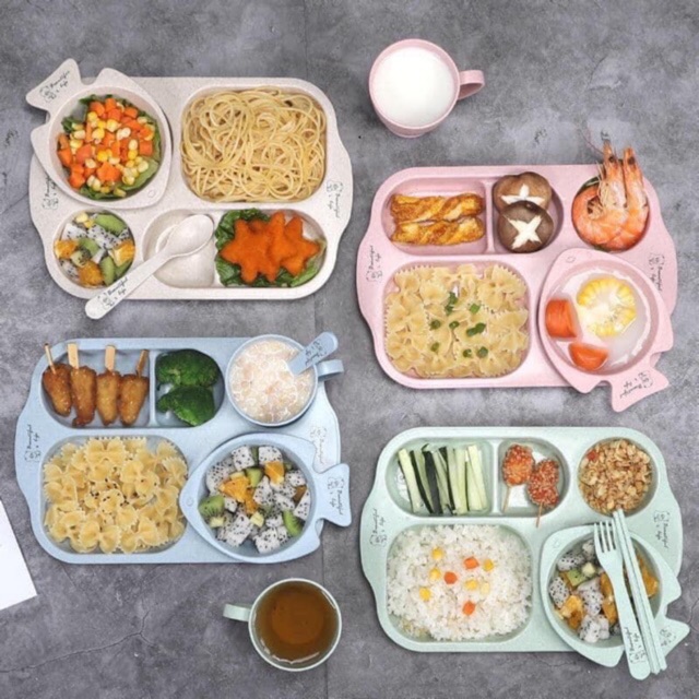 Mẹ & Bé > Đồ dùng ăn dặm cho bé > Đồ dùng cho bé > Đồ dùng ăn dặm || Bộ khay ăn dặm lúa mạch 6 chi tiết