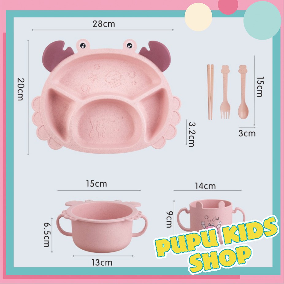 Giới thiệu khay ăn dặm lúa mạch chia ngăn hình chú cua kèm thìa, đũa, nĩa