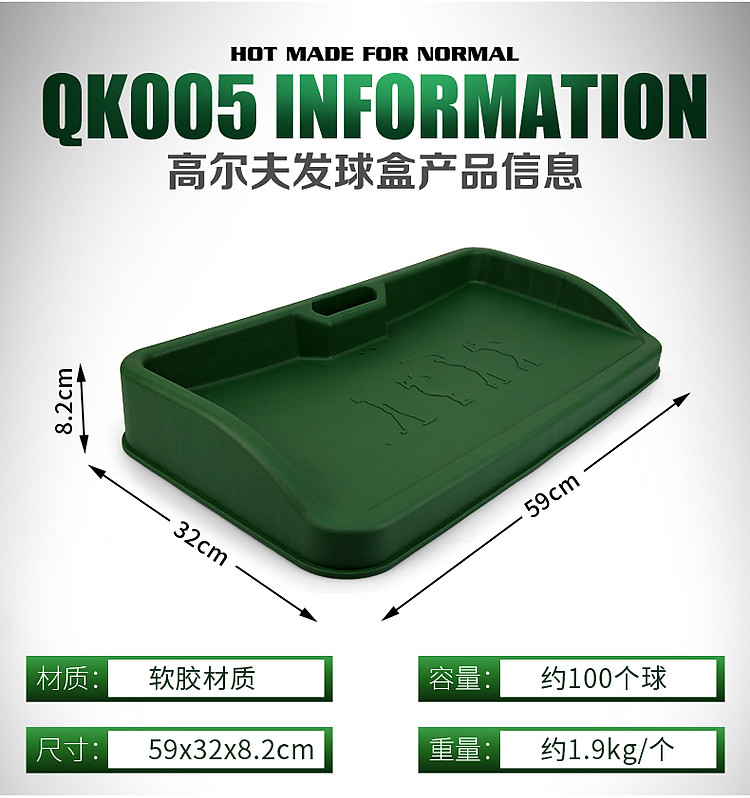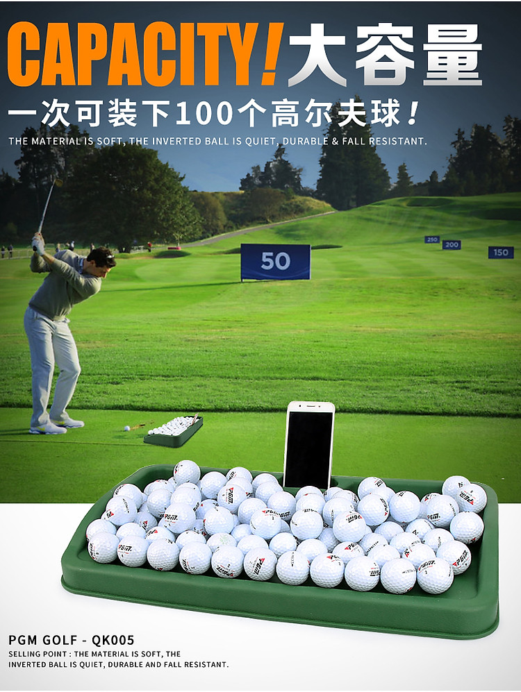 - QK005 là phụ kiện Golf phổ biến có thể hỗ trợ người chơi trong việc luyện tập, khay làm từ cao su đàn hồi tốt và chứa được lên tới 100 quả bóng.