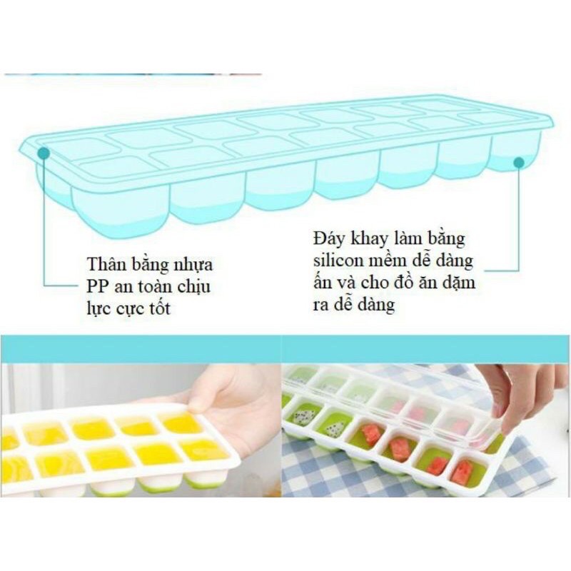 THÔNG TIN SẢN PHẨM --------------------------------- - Một khay chia 14 ngăn tiện lợi, 25ml/ ô - Làm từ nhựa PP cao cấp, không chứa PBA. - Có nắp đậy đảm bảo vệ sinh. - Đế làm bằng silicon dễ dàng sử dụng cho đồ ăn dặm ra khỏi khay - Khay trữ đông rất thích hợp để mẹ cất trữ khẩu phần riêng biệt cho con theo từng bữa (đặc biệt với các mẹ theo phương pháp ăn dặm kiểu Nhật).