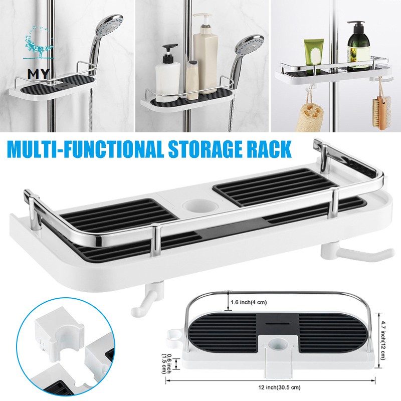 ____________________________♧Shop introduction ♧_______________________________ Welcome MAYOUNG Store ,We insist on the lowest price to sell the best quality items ❤ Decription: Features: 1. Tray height adjustable, you can set the height you need.Removable bottom plate, for easy cleaning. With hollow design, water draining, keep dry. 2. Shower shelf is perfect for holds bath lotion, shampoo, facial cleanser, shaver and more. Perfect home, hotel or bathroom accessory. 3. Easy and convenient installation, no drills, no glue. For shower pole fixing, fits for 22 ~ 25 mm mounting diameter hole. 4. Unique Design Humanized: The shower shelf with three-face fence design, can be fixed firmly, this will prevent the bottles from falling, this shower shelf is easy to adjust the height to suit your own situation, very humanized. 5. Material: ABS, size about 300x 120x 60 mm Notice: 1. Actual color may be slightly different from the image due to different monitor and light effect. Please allow minor deviation due to manual measurement. 2. Only for round shower columns, shower columns from 22 mm to 25 mm in diameter 3. The plastic clip is easy to break, please be careful when opening. Specification: Type: Multi-function shower lift rod storage rack Material: ABS Dimensions (approx.): 300x 120x 60 mm Installation method: snap-on Suitable rod diameter: 22-25cm Included: 1 x storage rack