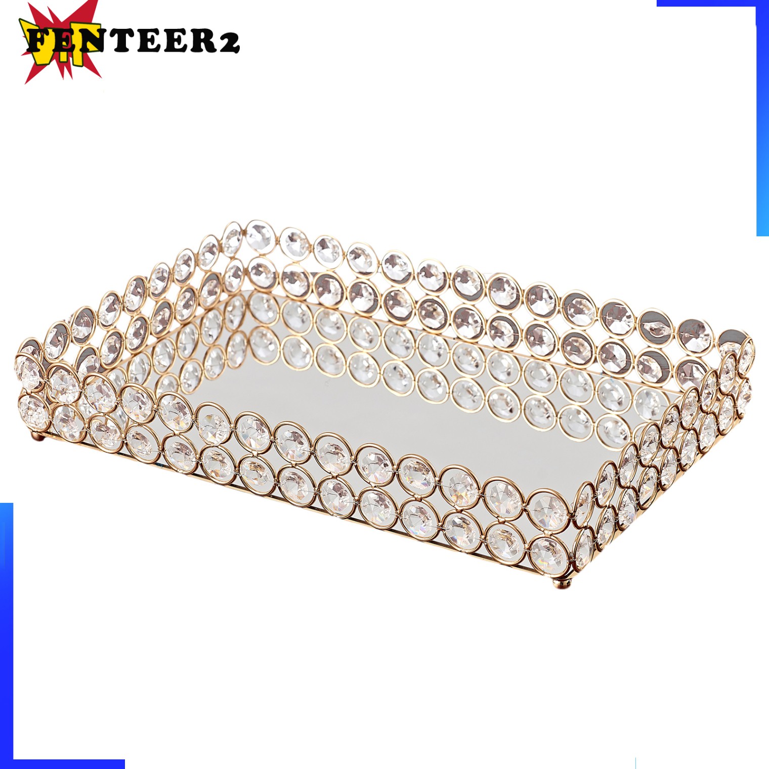 Description: Elegant and sleek stylish design, makes with sparkling crystal intricately woven into metal rings around a gorgeous mirrored base. Great for storing and displaying unique jewelry pieces, perfume,skin care, candles and decorative keepsakes etc. Multipurpose use as bathroom storage , makeup organizer or jewelry tray, flower vase or serving drinks etc for party wedding and centerpieces. Applicable for any occasions, such as bars, restaurants, cafes, office, home as great gold mirror tray, bathroom tray. Handcraft premium crystals, mirrored glass surface tray with stunning and sturdy base. Specification: Material: Iron+ Crystal Color: Golden Package Includes: 1 Piece Vanity Tray Note: Please allow slight dimension difference due to different manual measurement.