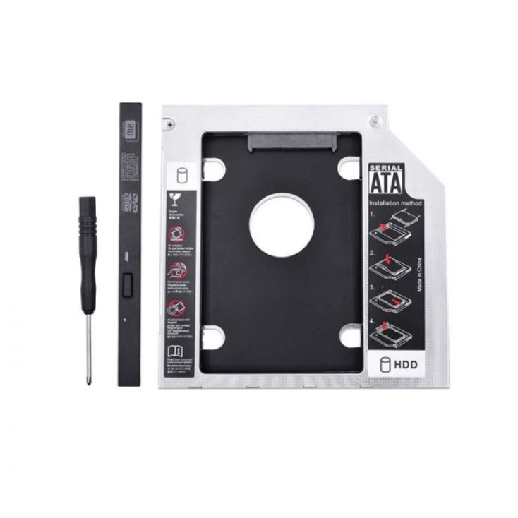 Caddy Bay là thiết bị dùng để gắn thêm ổ cứng HDD hoặc SSD thứ 2 cho những Laptop có sử dụng ổ đĩa DVD chuẩn SATA (Nếu Laptop của bạn không có ổ DVD thì bạn không thể sử dụng Caddy Bay). Bạn nên tìm hiểu ổ DVD trong Laptop của bạn đang chạy chuẩn gì và độ dày của ổ DVD. Caddy Bay Laptop thường có 2 loại: loại dày 12.7 mm và loại mỏng 9.5 mm. Caddy Bay sẽ được gắn vào đúng vị trí của ổ DVD (hầu như không có ai sử dụng). Đặc biệt với Caddy Bay người dùng vẫn được sử dụng đầy đủ tốc độ đọc ghi vốn có của HDD hoặc SSD. Tương thích với tất cả dòng SSD SATA 3 hiện nay theo form chuẩn mà nhà cung cấp đưa ra , dễ dàng tháo lắp và cài đặt với ốc và vít được nhà cung cấp tích hợp sẵn theo hộp sản phẩm. Sản phẩm cấu thành bởi nhôm cao cấp 100%, vừa cứng cáp chắc chắn, vừa giúp tản nhiệt hiệu quả hơn. Dòng máy hỗ trợ: Lenovo, Toshiba, Hewlett-Packard HP, Asus, Acer, Dell, Samsung, BenQ, Sony,...