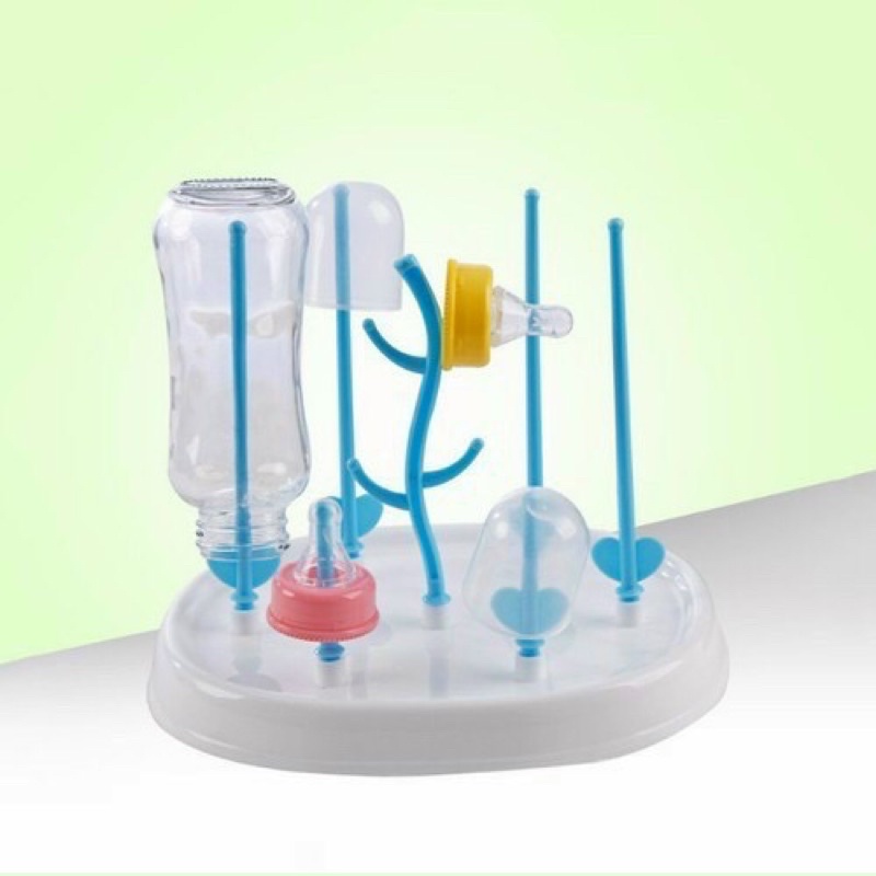 *** Giá úp bình sữa, núm ti cho bé Sau khi bé uống sữa mẹ cần làm sạch bình sữa, núm ty và bảo quản sạch sẽ, gọn gàng,khô ráo để cho lần sử dụng tới thì việc sử dụng 1 chiếc úp bình sữa thật sự cần thiết *** Đặc điểm nổi bật của giá úp bình sữa hình cây : – Toàn bộ giá úp đều được làm bằng chất liệu nhựa PP cao cấp, không chứa BPA đôc hại, rất an toàn cho sức khỏe – Thiết kế dạng cây độc đáo với nhiều que có độ dài ngắn khác nhau giúp mẹ phơi khô bình sữa ,nắp bình ,núm ty cùng một lúc nhanh chóng và tiện lợi. – Những chiếc que này có độ chịu lực tốt, độ bền cao và được xử lý trơn nhẵn nên sẽ không làm trầy xước bình, cốc hay làm rách núm ty,…. – Cuối mỗi nhánh của giá thiết kế bo tròn giúp hạn chế tình trạng rơi đổ bình núm trong mọi trường hợp – Sản phẩm có thể tháo rời các nhánh của giá rất tiện lợi mỗi khi làm sạch giá cũng như thuận tiện khi đặt ở bất cứ nơi đâu, phù hợp với mọi không gian nhà. – Chân giá phẳng nên mẹ có thể đặt giá ở bất cứ đâu trong nhà. - Kích thước(DxRxC):24x20x18cm
