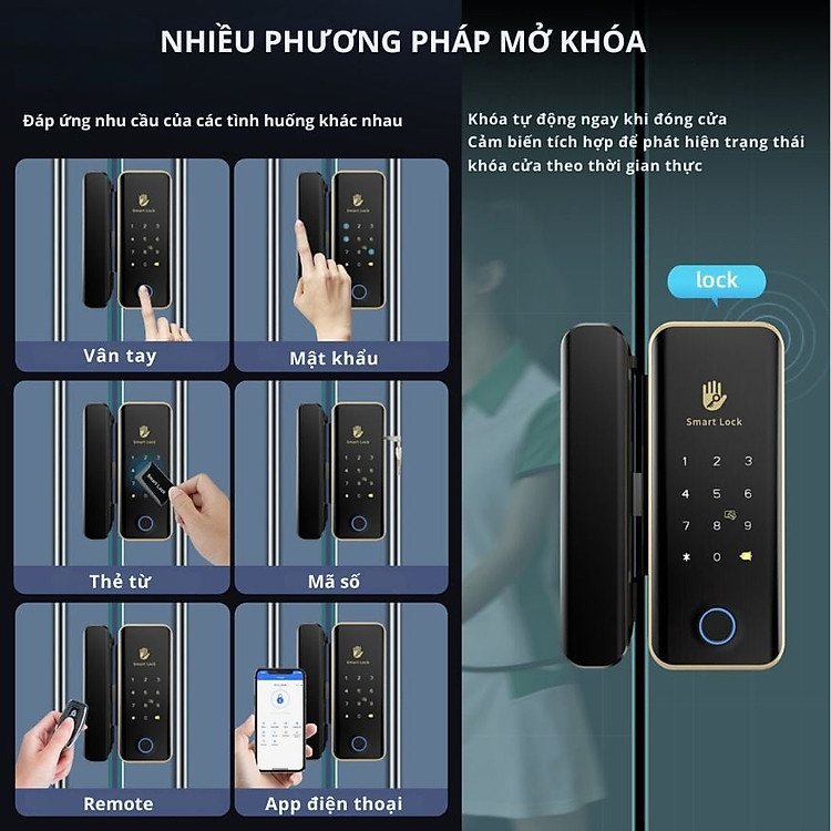 | Loại cửa phù hợp | Cửa kính cường lực (Cửa lùa & Cửa đẩy/xoay) |