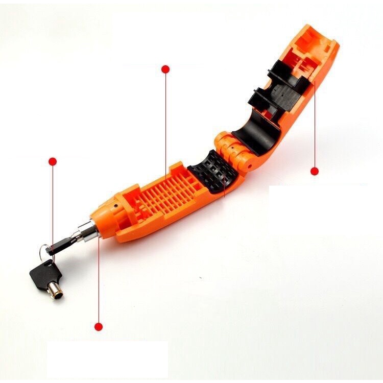 Khóa được làm từ nhựa ABS + thép chống gỉ cao cấp Sản phẩm giúp cố định tay phanh, tay ga đảm bảo an toàn cho xe máy Chìa khóa chống đoản, nâng cao độ an toàn Kích thước nhỏ gọn, thuận tiện mang theo khi vân chuyển