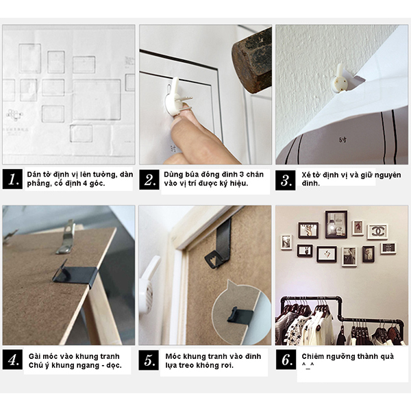 + Đinh 3 chân đóng vào tường rất nhanh, thẩm mĩ, không gây lỗ trên tường