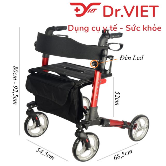 Khung tập đi cao cấp Lucass W-89 màu đỏ - Màu sắc: Bạc - Đỏ - Chất liệu: khung hợp kim nhôm. - Chiều cao: 80-92cm - Chiều rộng: 55.5m - Chiều dài: 68.5cm - Chiều cao chổ ngồi: 52cm - Bánh xe trước và sau: 20cm - Có ghế ngồi, giỏ đựng đồ, thắng tay. - Trọng lượng: 8,8kg. - Tải trọng 100kg - Phụ kiện đi kèm gồm: Đèn LED - Giá cắm gậy - Chuông - Khay đựng nước.