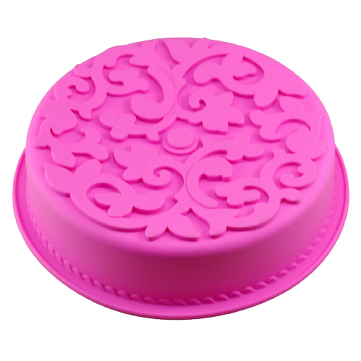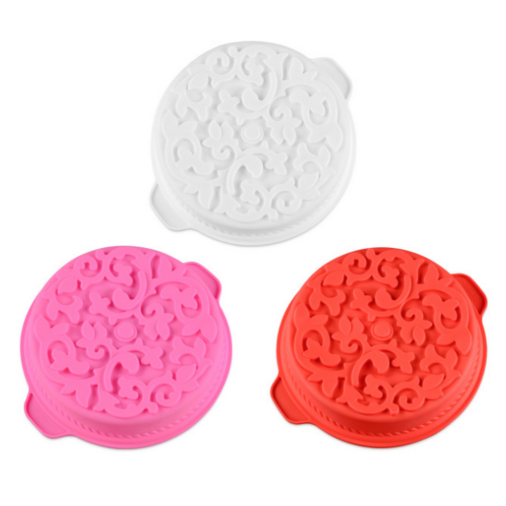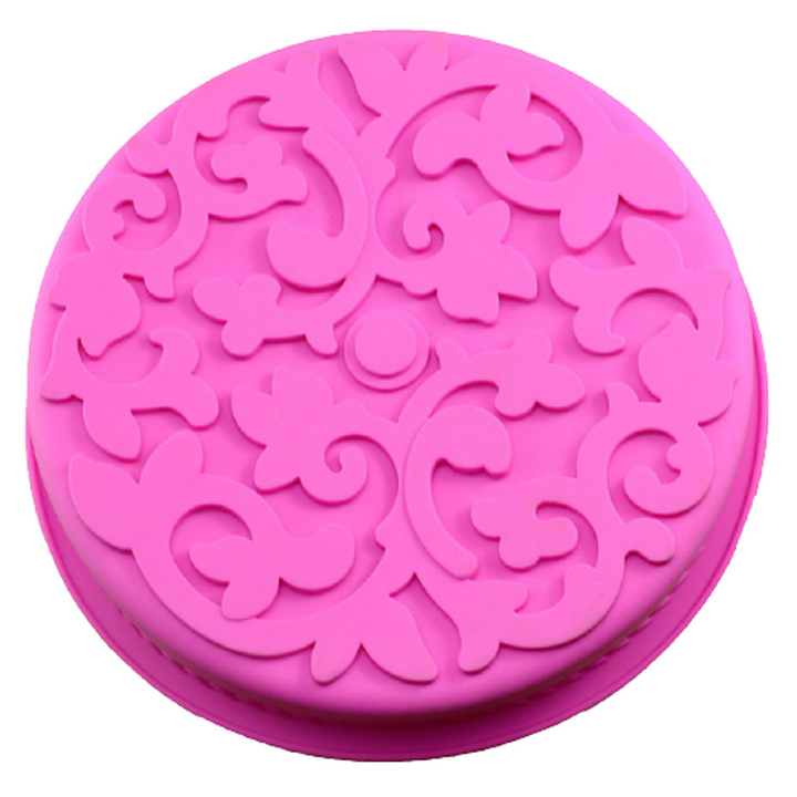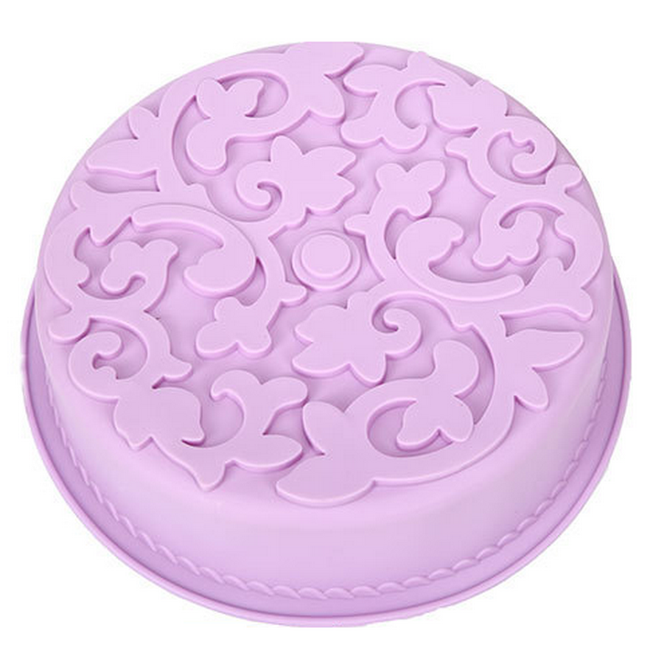 Khuôn silicon làm đế bánh, rau câu hình tròn hoa văn kiểu - Loại 28 cm – Mã số 1141