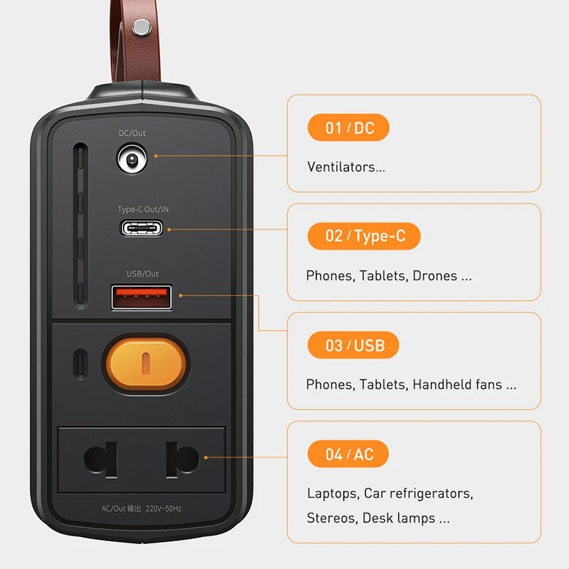 Giới thiệu Kích nổ ô tô thế hệ mới Baseus CRJS02-A0G, 52Wh, PD 60W, DC to AC (điện xoay chiều) 220V/100W