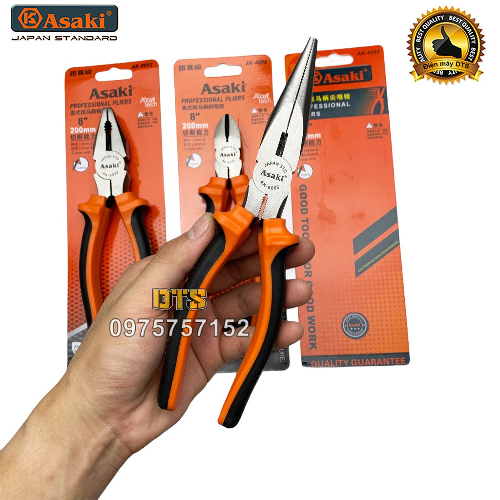 Nhà cửa & Đời sống > Dụng cụ & Thiết bị tiện ích > Dụng cụ > Kìm || Kìm điện, kìm cắt, nhọn 8 inch kiểu Mỹ A+cut Tech Asaki JAPAN STD 200mm, thép High Carbon độ cứng cao