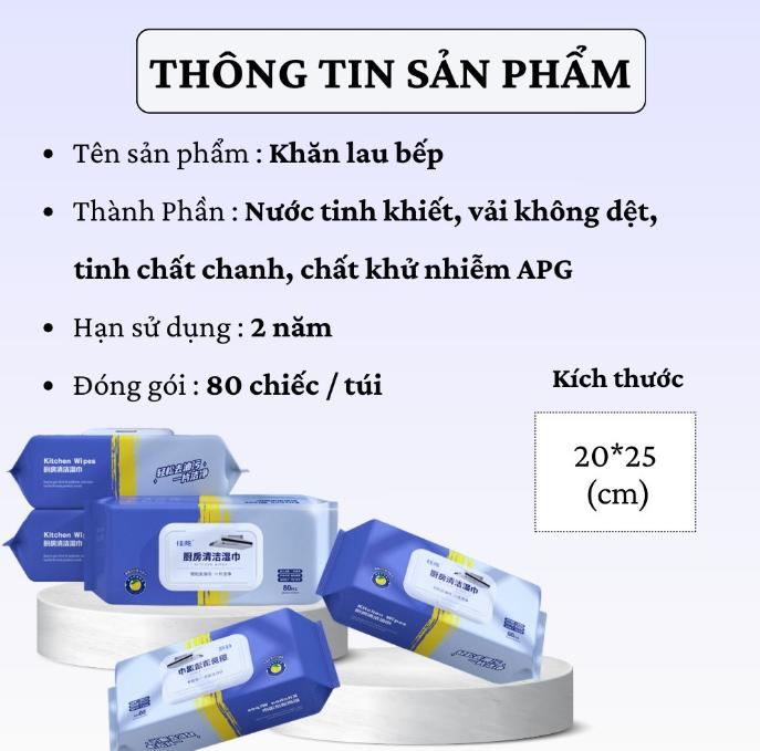 Khăn ướt lau bếp đa năng gói 80 tờ lớn giúp loại bỏ dầu mỡ Khăn giấy ướt lau nhà bếp đồ dùng nội thất siêu dai an toàn da tay