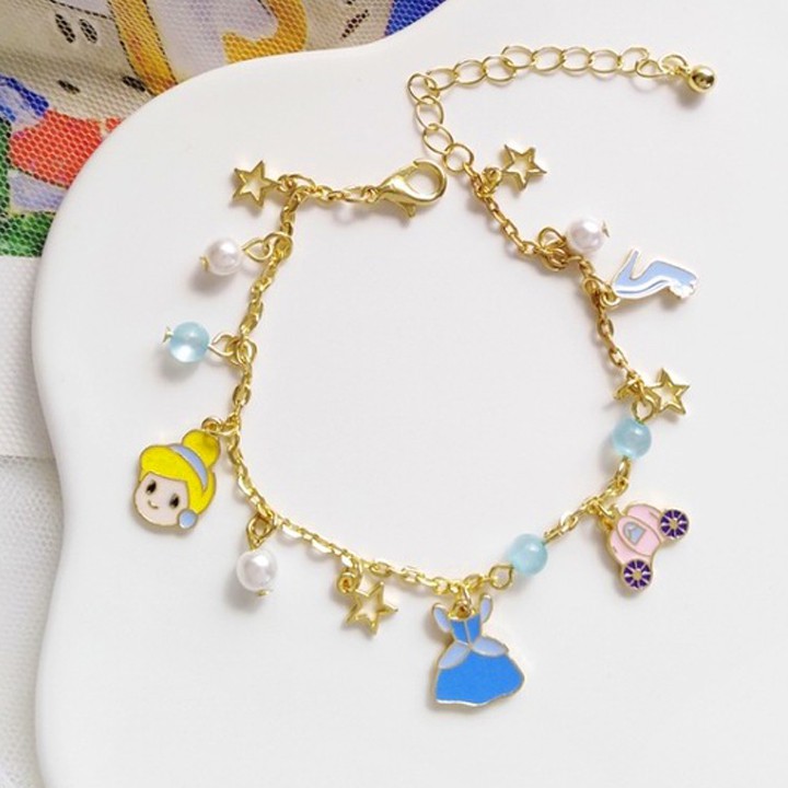 Lắc tay cho bé gái phong cách Hàn Quốc họa tiết công chúa xinh xắn bằng hợp kim cao cấp BBShine – J048