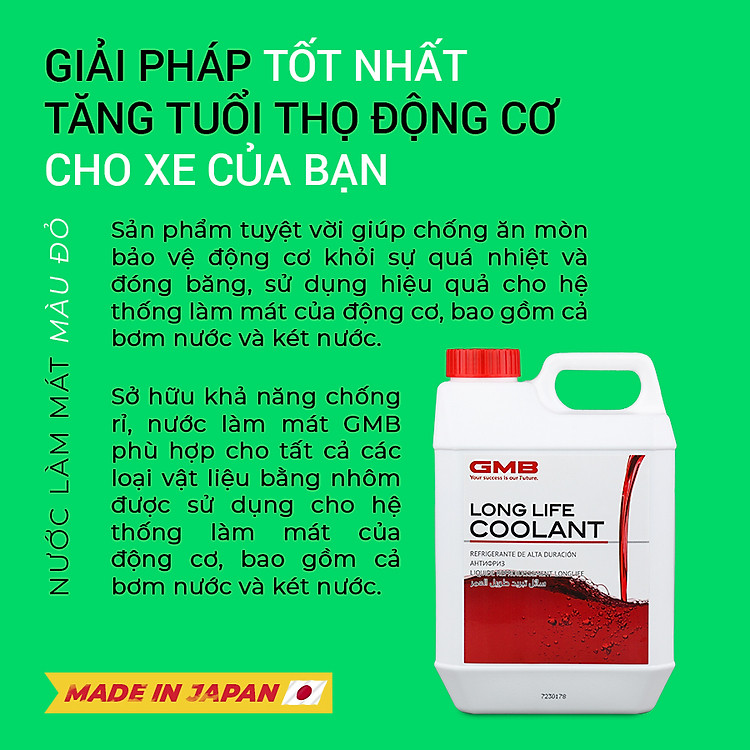 Nước Làm Mát Động Cơ Màu Đỏ GMB GLC-20-2.0-039 2L là sản phẩm được nghiên cứu để chống mòn, bảo vệ động cơ khỏi sự quá nhiệt và đóng băng, sử dụng hiệu quả cho hệ thống làm mát của động cơ, bao gồm cả bơm nước và két nước. Sản phẩm đã được kiểm chứng bởi các trung tâm hàng đầu, đảm bảo không những giúp bạn yên tâm hơn về chất lượng mà còn cả về độ an toàn khi sử dụng.