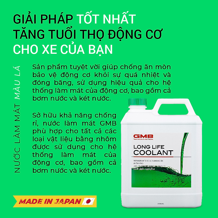 Nước Làm Mát Động Cơ Màu Lá GMB GLC-20-4.0-040 4L là sản phẩm được nghiên cứu để chống mòn, bảo vệ động cơ khỏi sự quá nhiệt và đóng băng, sử dụng hiệu quả cho hệ thống làm mát của động cơ, bao gồm cả bơm nước và két nước. Sản phẩm đã được kiểm chứng bởi các trung tâm hàng đầu, đảm bảo không những giúp bạn yên tâm hơn về chất lượng mà còn cả về độ an toàn khi sử dụng.