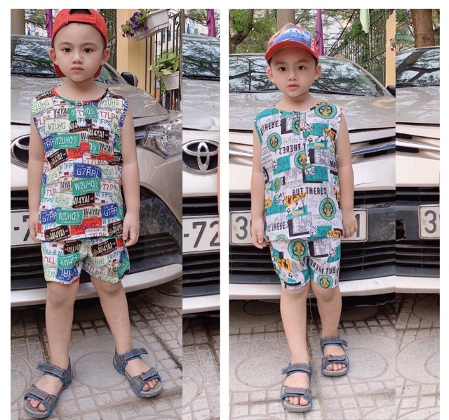 Bộ đồ lanh size đại sát nách bé trai (có bảng size hình cuối)-KellyWang