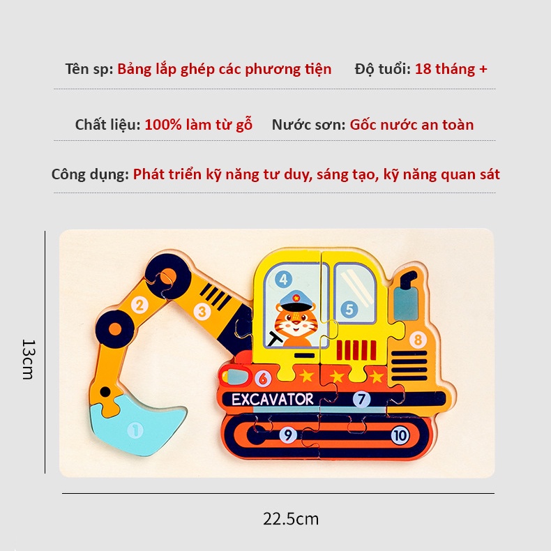 Đồ chơi lắp ráp xếp hình các phương tiện 3D cho bé Đồ chơi gỗ thông minh Bapkids