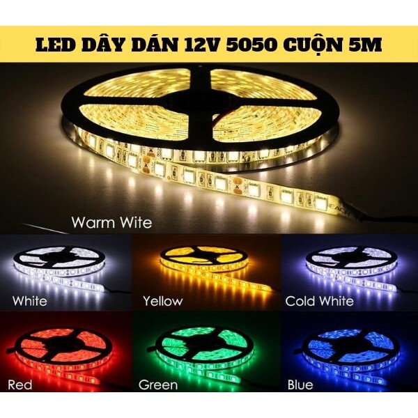 Nhà cửa & Đời sống > Dụng cụ & Thiết bị tiện ích > Keo & chất kết chính công nghiệp || LED dây 12V, 5050, cuộn 5m, phủ silicon chống nước IP65, 1 mặt dán, RGB nhiều màu quay tiktok