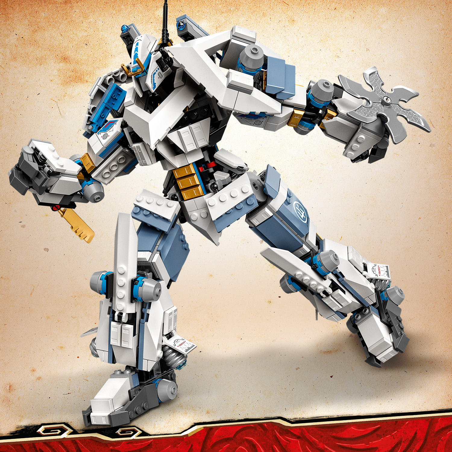 • Cao hơn 10 inch (26 cm), dài 3,5 inch (9 cm) và rộng 5,5 inch (15 cm) Zane’s Titan Mech trông tuyệt vời khi được trưng bày trong phòng ngủ của trẻ giữa các trận chiến trong giờ chơi.