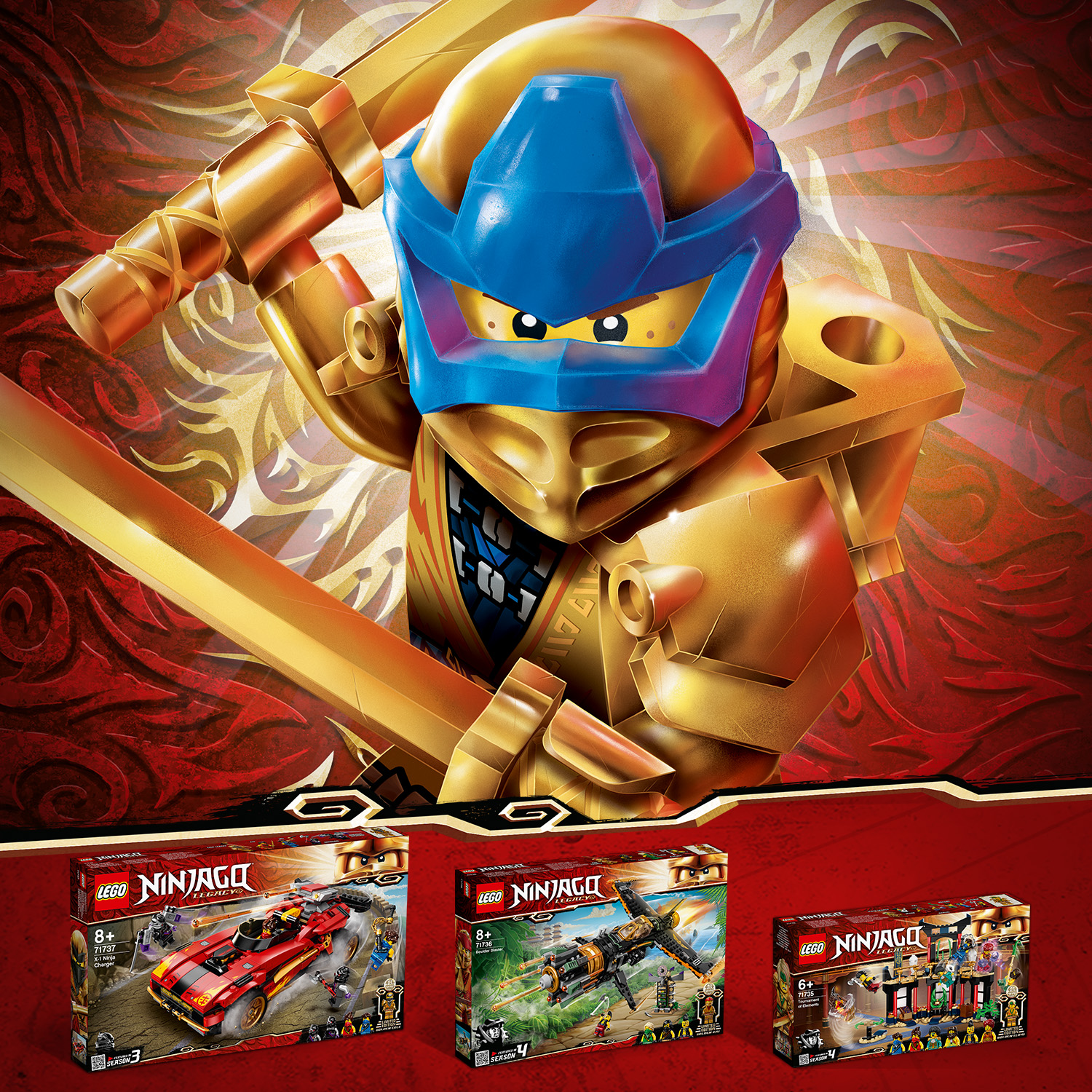 • Tìm kiếm các nhân vật nhỏ màu vàng đặc biệt có thể sưu tập được trong các bộ NINJAGO khác: Tournament of Elements (71735), Boulder Blaster (71736) và X-1 Ninja Charger (71737).
