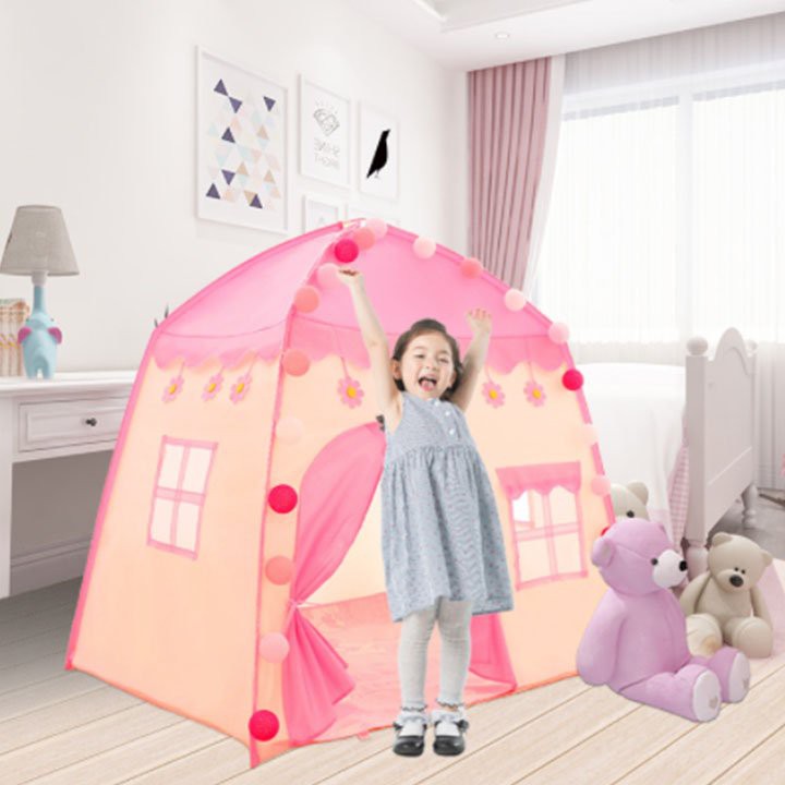 Chất liệu cao cấp, an toàn: – được làm từ chất liệu cao cấp, tuyệt đối an toàn với trẻ nhỏ khi tiếp xúc. – Khung lều được làm từ chất liệu nhựa PVC bền đẹp chắc chắc cùng tấm lót mềm mại nên mẹ an tâm khi bé chơi bên trong lều. Thiết kế xinh xắn thuận tiện: – được thiết kế theo phong cách lều ngủ của những nàng công chúa và hoàng tử trong chuyện cổ tích, với nhiều màu sắc tươi sáng cùng kiểu dáng vô cùng đáng yêu mang lại cho bé một không gian vô cùng rộng rãi và thoáng giúp bé thoải mái vui chơi cùng bạn bè và bố mẹ. – Các bộ phận của chiếc lều được tháo lắp một cách dễ dàng và nhanh chóng, giúp ba mẹ dễ dàng lắp ráp cho bé hay gấp gọn để mang theo mỗi khi bé đi dã ngoại cùng gia đình. Khung lều được thiết kế dạng hình lục giác giúp chiếc lều chắc chắn hơn không dễ dàng đổ khi gặp gió. – Sáu mặt của lều được thiết kế rèm che có tác dụng như một chiếc màn, mẹ có thể buộc gọn khi bé chơi hay thả xuống mỗi khi bé ngủ trong lều. – Ngoài ra, mẹ có thể trang trí thêm đèn nhấp nháy để cho lều của bé thêm phần lung linh và rực rỡ hơn, sẽ càng khiến cho bé thêm yêu chiếc lều dễ thương này.