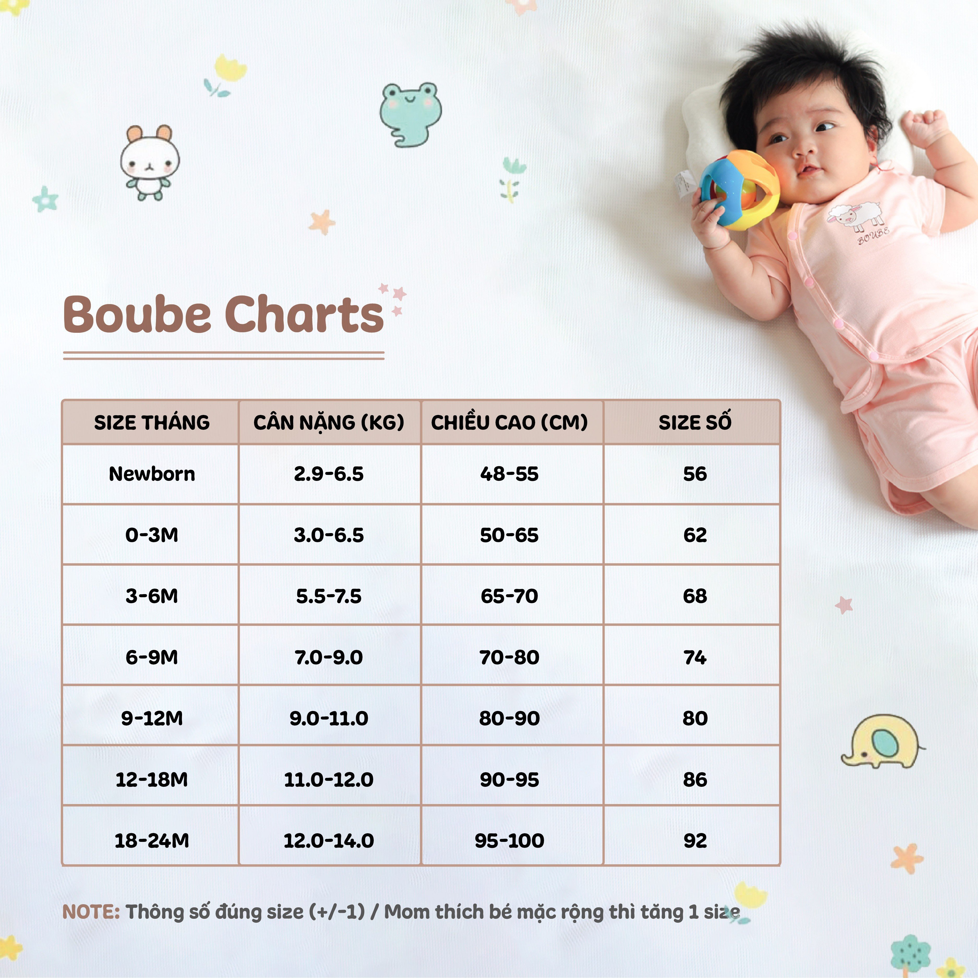 - Size cỡ: 0 đến 9 tháng (0-9M)