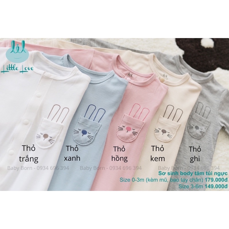 Thời trang trẻ em & trẻ sơ sinh > Quần áo trẻ em > Bộ quần áo || LIL - Bộ sơ sinh cài thẳng túi thỏ chất thun tăm mềm mại (tặng phụ kiện mũ và bao tay chân cho size 0-3m)
