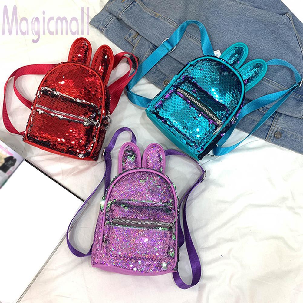 Sequins Children Backpack Teenage Girls GlitterPU Leather Cartoon Rabbit Cute School Book Bag Features: Strap belt reinforcement, durable and not damaged. 3D ears are more lovely, the beads shine in the sun.