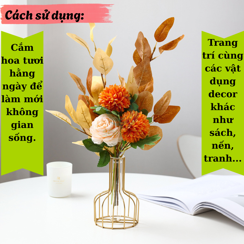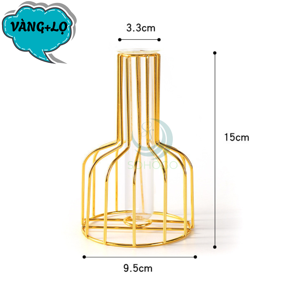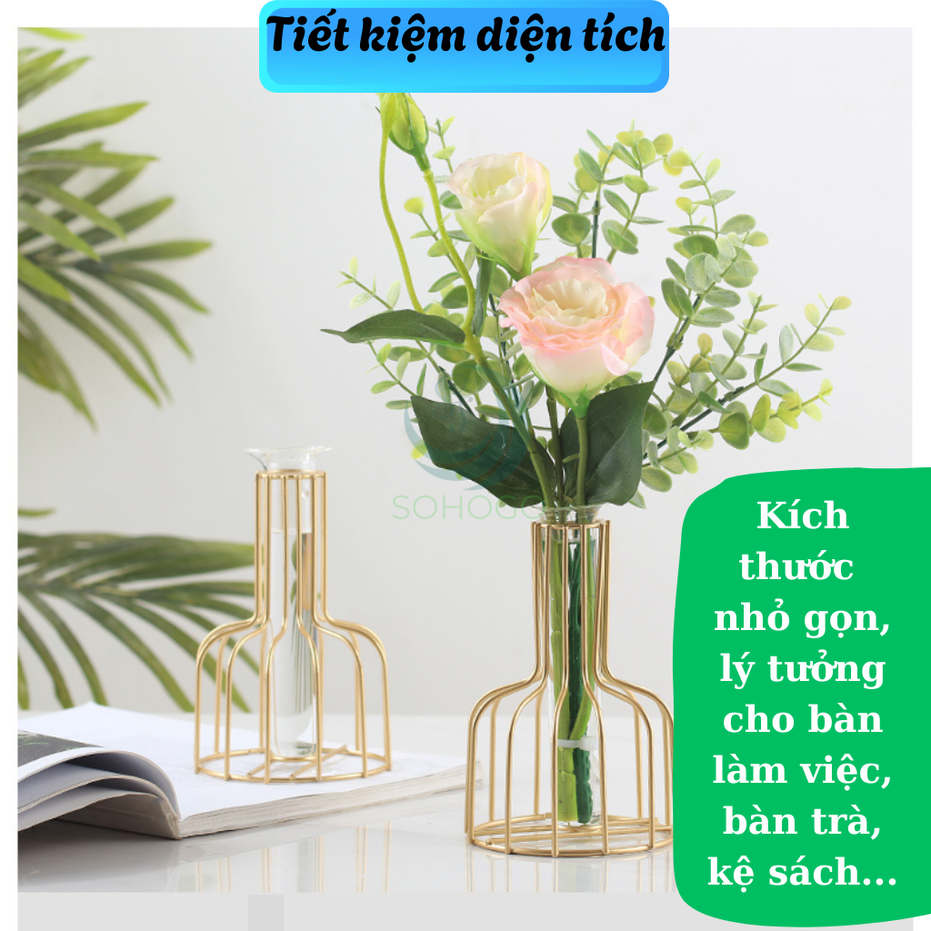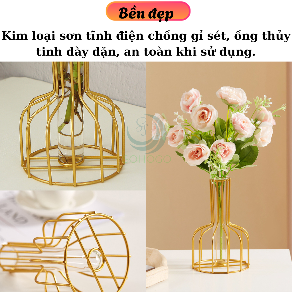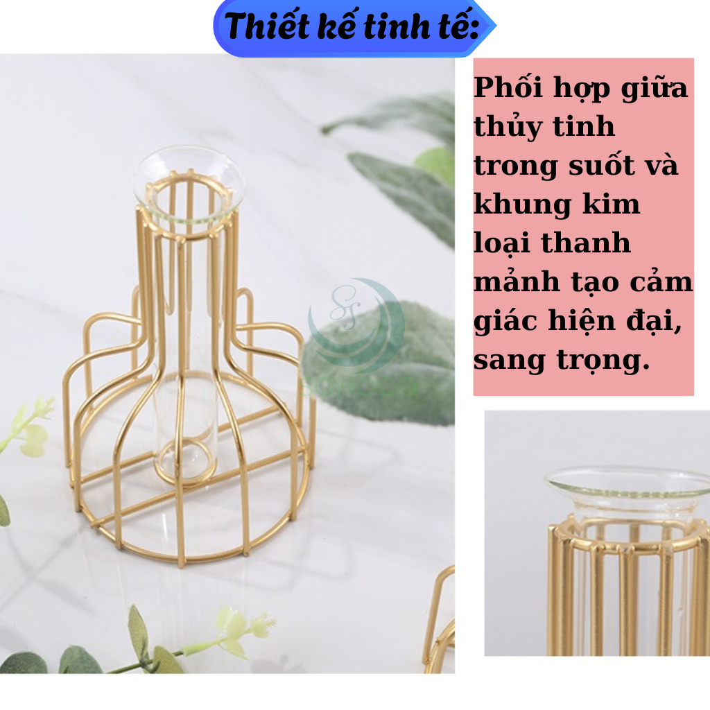 Lọ Hoa Trang Trí Khung Kim Loại Sang Trọng- Bình Hoa Thủy Tinh Kèm Khung Sắt Nghệ Thuật- Lọ Hoa Phong Cách Bắc Âu - Bình Hoa Decor Nội Thất Hiện Đại- Lọ Hoa Khung Sắt Kèm Ống Thủy Tinh Trang Nhã