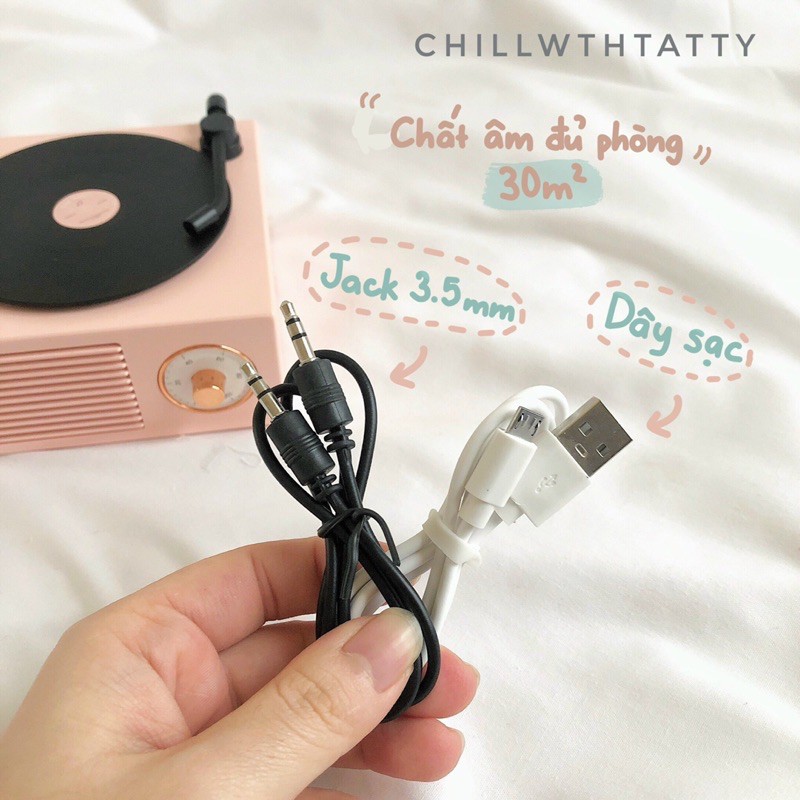 📸📸 Lâu lâu lại tìm được items cực hot cho khách tuii nèe LOA CHẠY GIẢ ĐĨA VINYL MANG ĐẬM PHONG CÁCH VINTAGE💗💗 Pác nào mê đĩa than nhưng ví tiền hạn hẹp chưa sắm được máy Vinyl Player thì sao k thử cân nhắc bé loa bluetooth này nhỉii😉 Điểm qua vài nét về em ấy nhaa: ✔️ Thiết kế mang đậm phong cách vintage, khi loa chạy đĩa than sẽ quay k khác chìi máy Vinyl Player lunn😋 ✔️ Chất âm cực mượt, to, rõ bass, đặc biệt K BỊ RÈ kể cả khi bật max volumne👍 Cả phòng rộng 30m2 dùng em này vẫn thoải mái lun nhaa chứ k như mấy bé loa bluetooth mini khác đouu ạa😉 Dung lượng pin 1000mAh nghe nhạc liên tục 8-10 tiếng mà k sợ hết pin lun😱😱 ✔️ Hỗ trợ khe cắm thẻ nhớ, USB, jack 3.5mm, kết nối bluetooth với mọi thiết bị ✔️ Thiết kế nhỏ gọn 11*10*6cm dễ dàng mang đi du lịch và là items trang trí phòng cực đỉnh nhaa🤗🤗 ✔️ Có 3 tone màu cực xinh và TRENDY: trắng, xanh pastel, hồng pastel✨✨✨ -> Một bộ fullbox bao gồm: loa Vinyl, dây sạc, dây 3.5mm(kết nối với các thiết bị k hỗ trợ bluetooth), phiếu bảo hành