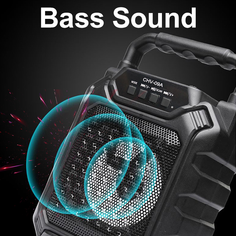Portable Bluetooth Speaker, built-in bluetooth 4.1 wireless transmission, working distance up to 10 meters Compatible with all bluetooth devices such as smart phones, tablet PC Support TF Card music playback Support FM radio, FM channel automatically Support 4Inch full all frequency horn, big power 30W, heavy bass guide tube design Can match the personal computer, MP3, MP4, and is equipped with 3.5mm stereo audio output interface of the mobile phone and other audio equipment Equipped with one short handle for conveniently carry out