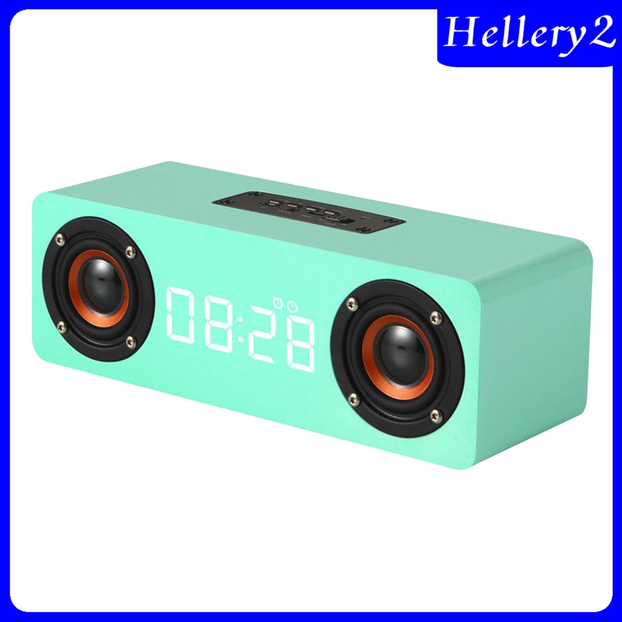 Description: This speaker has wireless Bluetooth connection, wired audio connection, and can be played by computer, TV, U disk/TF card. This Bluetooth speaker has time display, alarm clock reminder function, FM radio function and so on. Bluetooth 5.0, wooden cabinet, automatic brightness adjustment of the clock screen. Multiple playback modes, both wired and wireless. Outstanding sound, unique wooden resonant cabinet, full frequency speakers to release the real pure sound. Specification: Power: 3Wx2=6W Speaker: 52mmx2 Box: Wooden box Volume adjustment: key tuning Power supply indicator: battery powered Battery capacity: 1500 mAh Bluetooth version: 4.2 version Connection method: Bluetooth, 3.5mm audio input, TF card Function: Bluetooth, 3.5mm audio input, TF card, clock display, alarm setting, FM Size: 9.25x3.34x3.07inch/235x85x78mm Package Includes: 1x speaker 1x Micro USB charging cable 1x manual