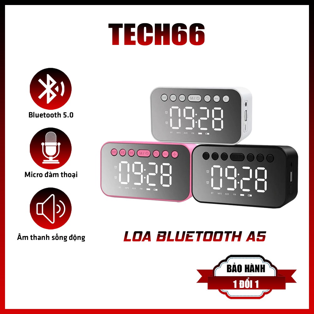 Giới thiệu Loa bluetooth kiêm đồng hồ báo thức A5 màn hình đèn led tráng gương hỗ trợ usb thẻ nhớ đài fm