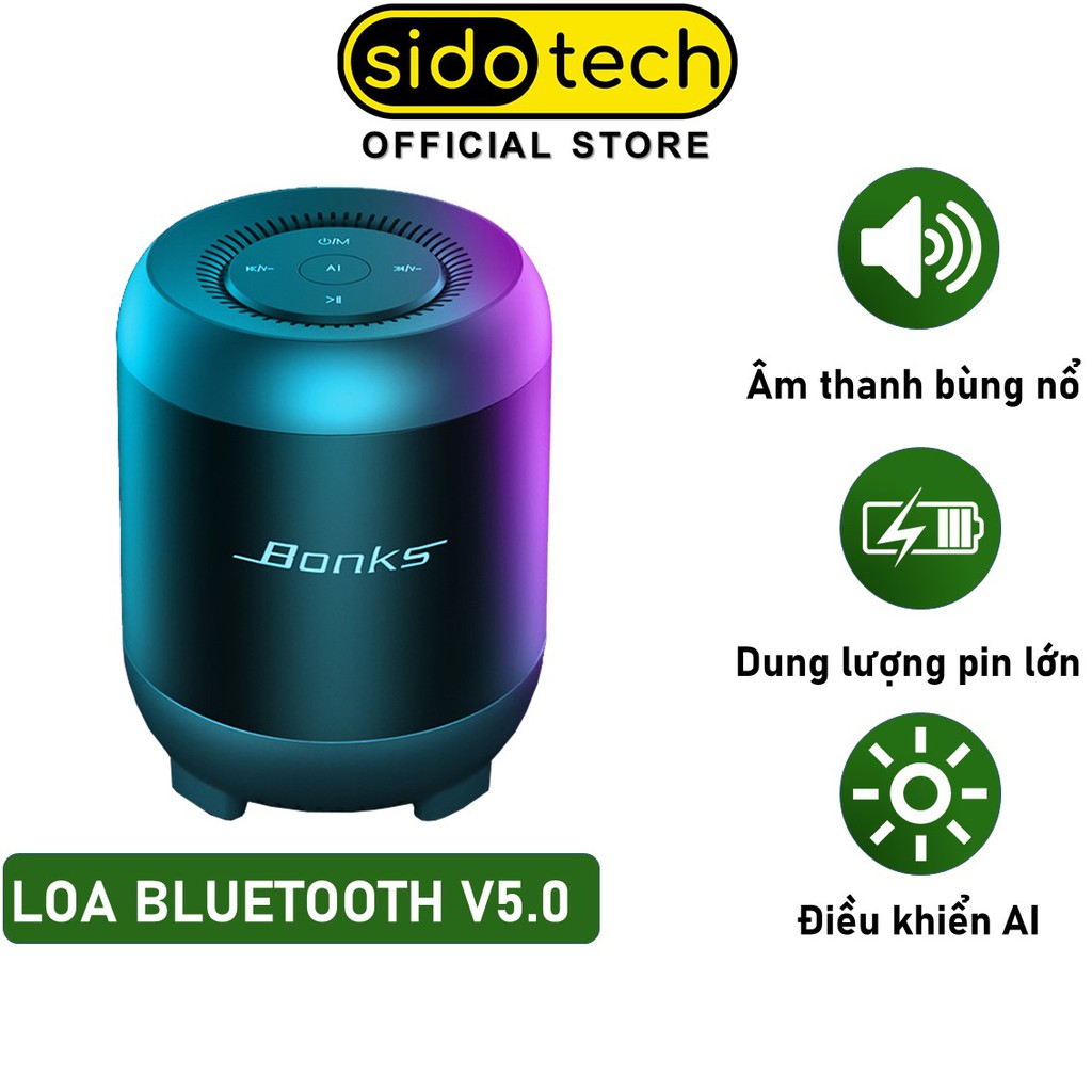 Giới thiệu Loa bluetooth mini cầm tay không dây hình trụ V5.0 pin 1200/2000mAh chip AI phát nhạc qua thẻ nhớ - SIDOTECH BKS