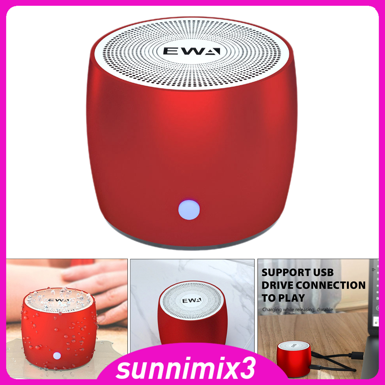 Description: Mini speaker is conveniently small but able to releasing crystal clear sound with impressive bass and room-filling loudness through a high-performance driver and a passive subwoofer. Small, but such powerful Bluetooth speakers. Weighing 5.6 ounces and measuring 1.89x1.51 inches, along with the speaker, you will get a metal hook and a carrying case which allows you to take your music on the go,and also protect your portable speaker from damage. So it is perfect for outdoor, hiking, beach, dorm room, kitchen, bathroom, boat, golf car and more The built-in 500 mAh Lithium-Polymer battery guarantees 3.5 hours of play time, and up to 5.5 hours at 50% volume. Just half an hour of charge time with 1A charger equals 2 Hours of play time. Our vision was to make a small wireless speakers with bluetooth that is just a speaker, so you can use it . We gave up functions such as a microphone, 3.5mm jack and unnecessary buttons, leaving one silicone button (Hold to switch on/ off, one-tap to pause, double-tap or triple-tap to switch songs), a perfect gift. WHAT YOU GET - 1 A103 Bluetooth speaker, 1 micro USB to USB charging cable, a user manual, 1 carrying case, 1 metal hook Specification: Horn diameter: 40mm S/N ratio>80db Power: 3W Battery capacity: 500mAh Bluetooth: 3.0 Material:metal Package Includes: 1x A103 Bluetooth speaker 1x micro USB to USB charging cable 1x user manual 1x carrying case 1x metal hook