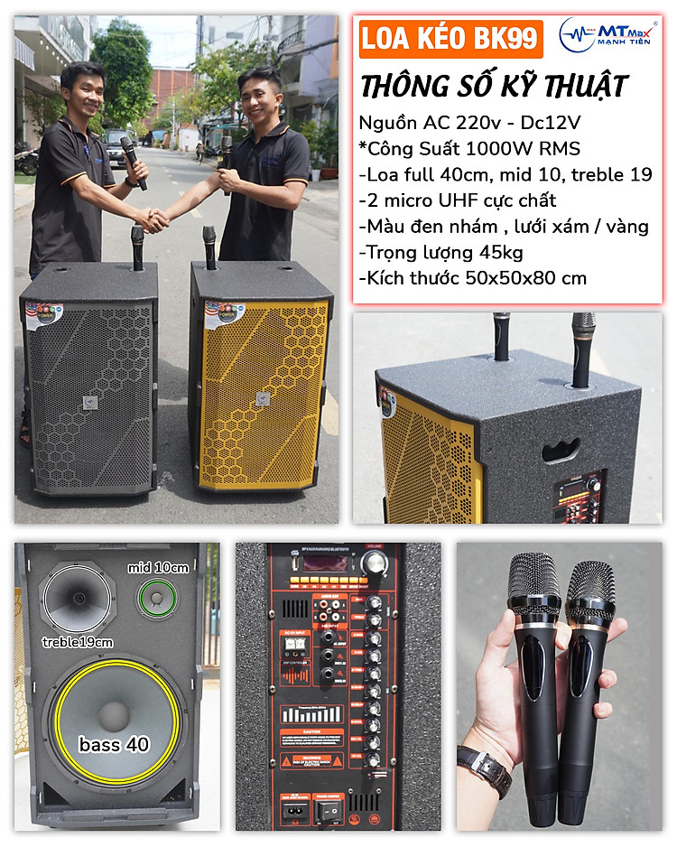 Thị trường xuất hiện rất nhiều mẫu loa kéo công suất cực lớn khiến người dùng băn khoăn khi chọn mua. Thấu hiểu được được điều đó Mạnh Tiến xin được giới thiệu sản phẩm Mới loa MTmax BK99 Với thiết bị này, mọi người sẽ được trải nghiệm được không gian sôi động với âm thanh cực chất.