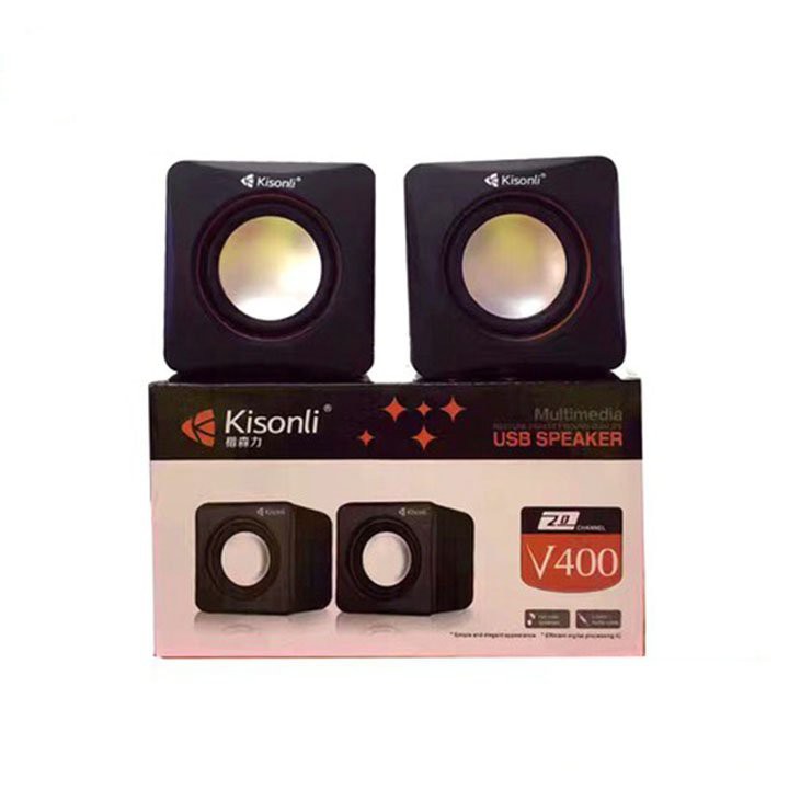 Loa Vi Tính  2.0  Kisonli V400. Dùng cổng USB làm nguồn và jack 3.5 kết nối PC, Laptop. Màu ngẫu nhiên. Vi Tính Quốc Duy
