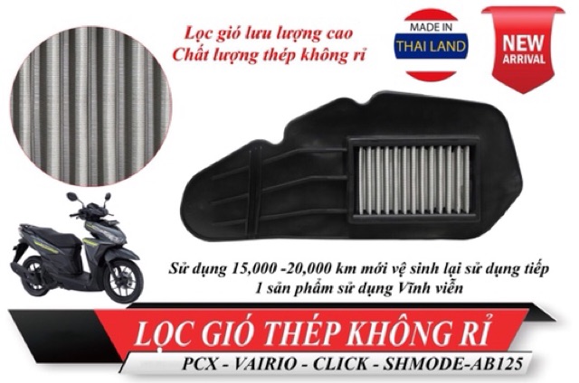 Giới thiệu Lọc gió Thép Độ cho Airblade Vario Click Pcx Sh Mode xài vĩnh viễn, vệ sinh được. DoChoiXeMay