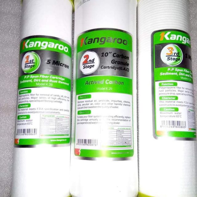 Giới thiệu Qua lọc nước kangaroo dùng cho máy lọc nước một bộ bao gồm 3 loi, số 1,2,3