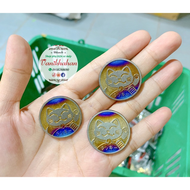 Ô tô - xe máy - xe đạp > Phụ kiện xe máy > Logo, huy hiệu || Logo titanium mèo may mắn